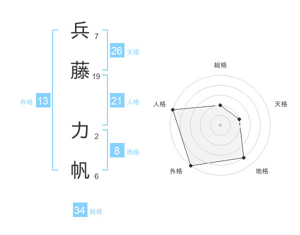 兵藤 力帆さんを姓名の画数から五運を鑑定