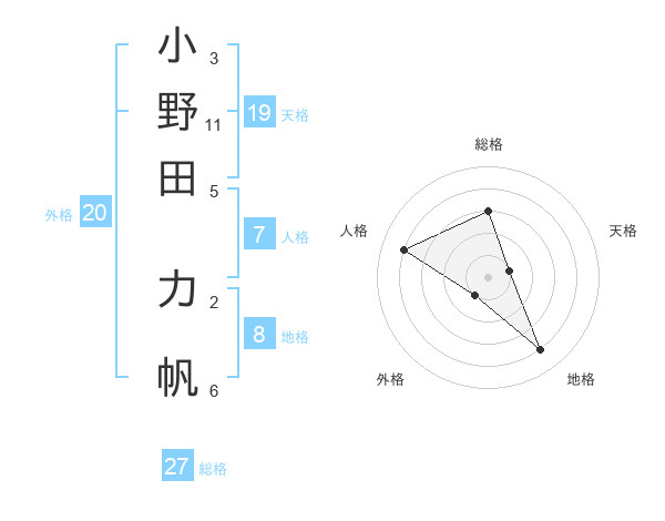 小野田 力帆さんを姓名の画数から五運を鑑定