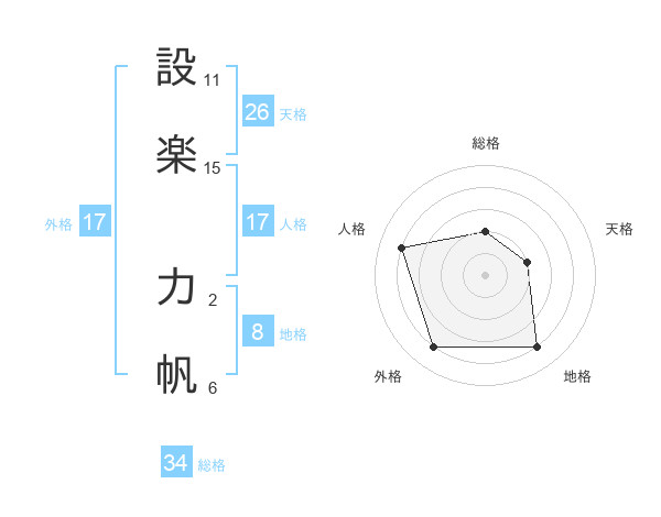 設楽 力帆さんを姓名の画数から五運を鑑定