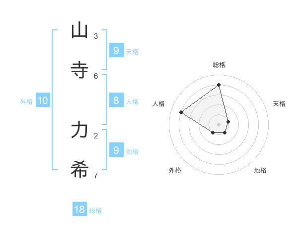 山寺 力希さんの総格は18画の4点!