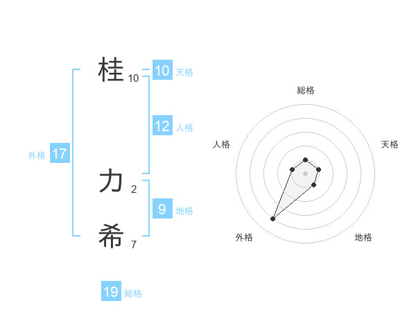 桂 力希さんの総格は19画の1点!
