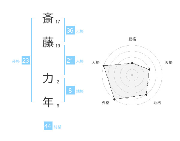 斎藤 力年さんを姓名の画数から五運を鑑定