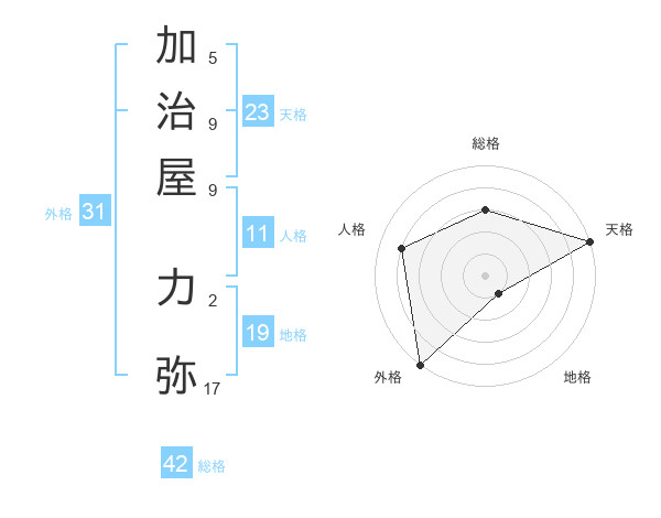 加治屋 力弥さんの総格は42画の3点!