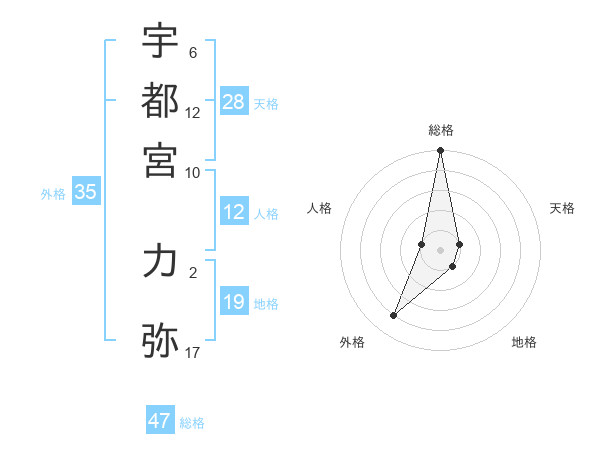 宇都宮 力弥さんの総格は47画の5点!