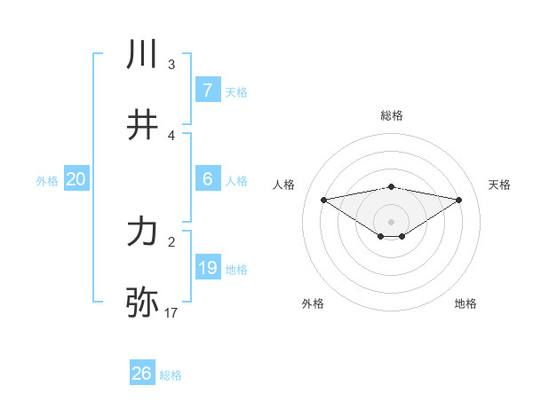 川井 力弥さんの総格は26画の2点!
