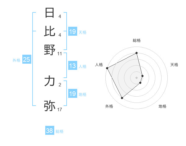 日比野 力弥さんの総格は38画の4点!