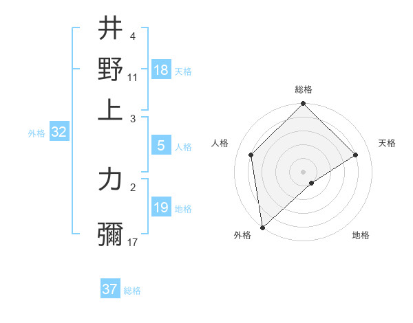 井野上 力彌さんを姓名の画数から五運を鑑定