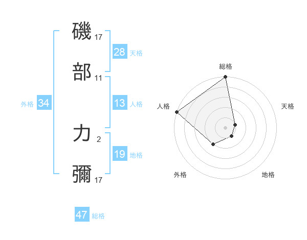 磯部 力彌さんの総格は47画の5点