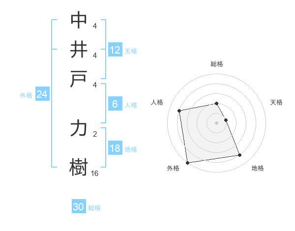 中井戸 力樹さんを姓名の画数から五運を鑑定