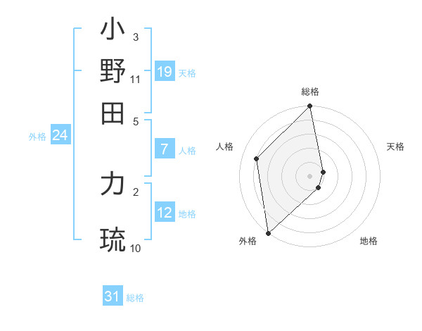 小野田 力琉さんを姓名の画数から五運を鑑定