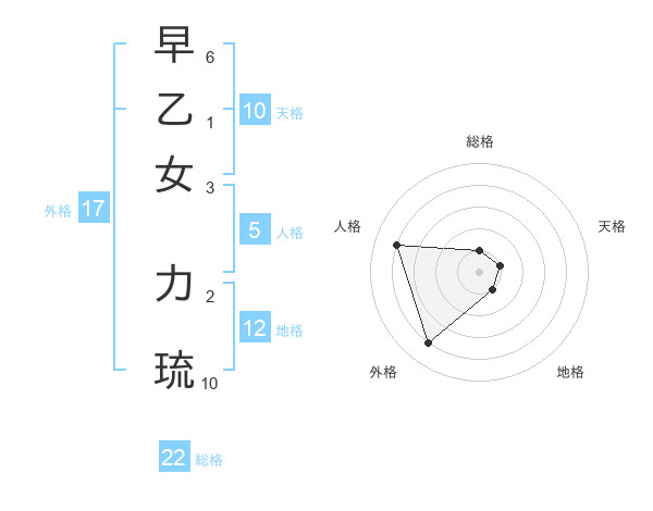 早乙女 力琉さんを姓名の画数から五運を鑑定
