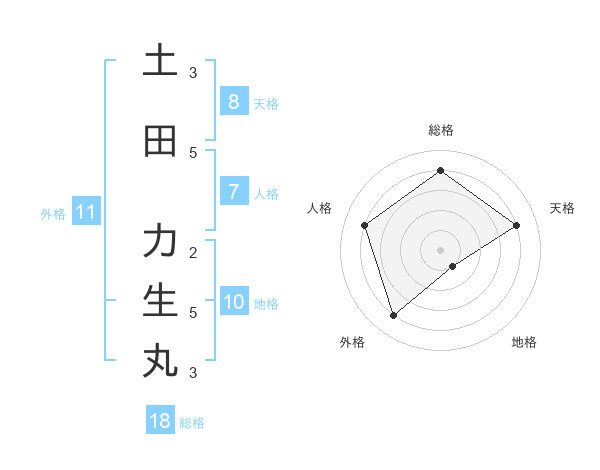 土田 力生丸さんの総格は18画の4点!