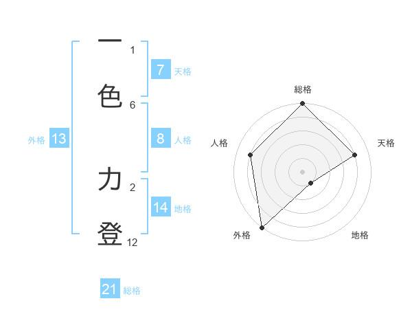 一色 力登さんの外格は13画の5点!