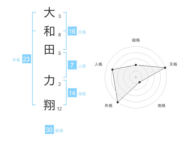 大和田 力翔さんの総格は30画の2点!