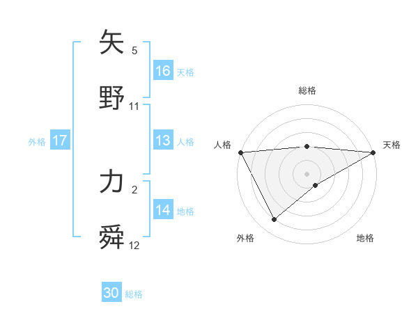 矢野 力舜さんの外格は17画の4点!