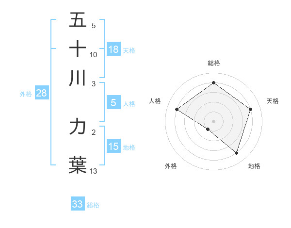 五十川 力葉さんを姓名の画数から五運を鑑定