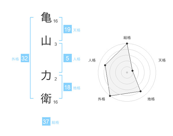 亀山 力衛さんの総格は37画の5点!