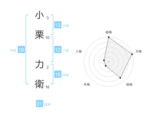 小栗 力衛さんを姓名の画数から五運を鑑定