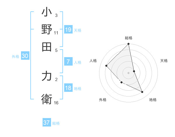 小野田 力衛さんを姓名の画数から五運を鑑定