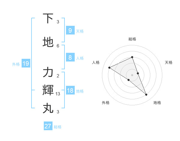 下地 力輝丸さんを姓名の画数から五運を鑑定