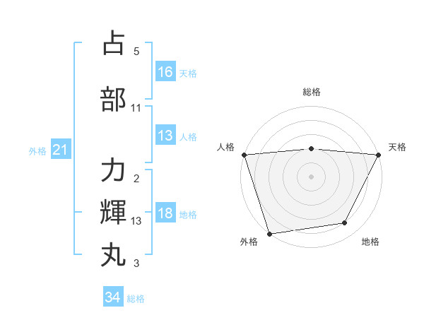 占部 力輝丸さんを姓名の画数から五運を鑑定