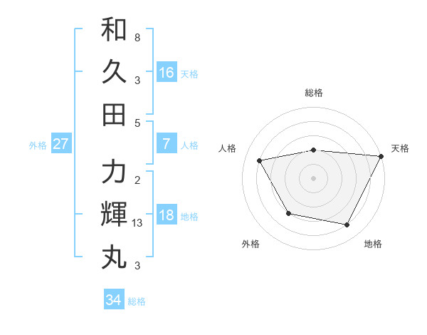 和久田 力輝丸さんを姓名の画数から五運を鑑定
