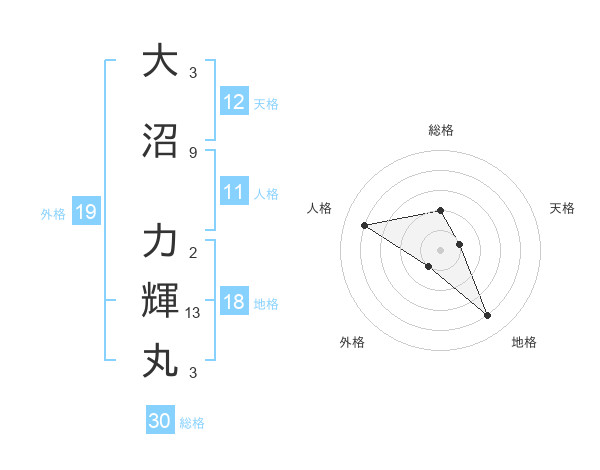 大沼 力輝丸さんの総格は30画の2点!