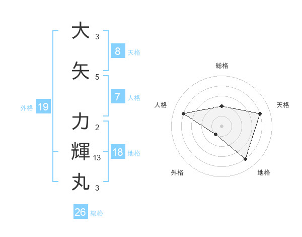 大矢 力輝丸さんを姓名の画数から五運を鑑定