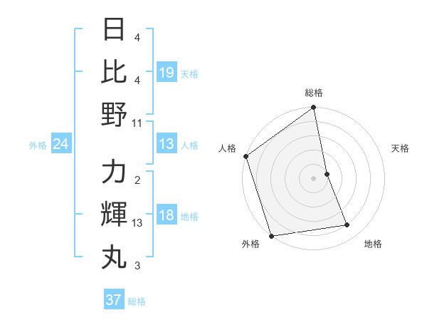 日比野 力輝丸さんを姓名の画数から五運を鑑定