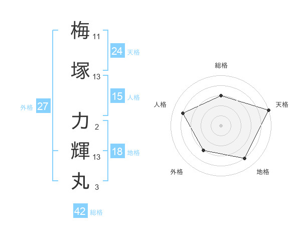 梅塚 力輝丸さんを姓名の画数から五運を鑑定