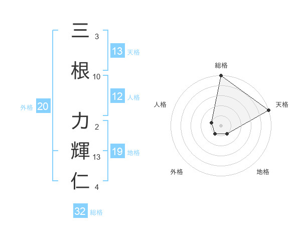三根 力輝仁さんを姓名の画数から五運を鑑定
