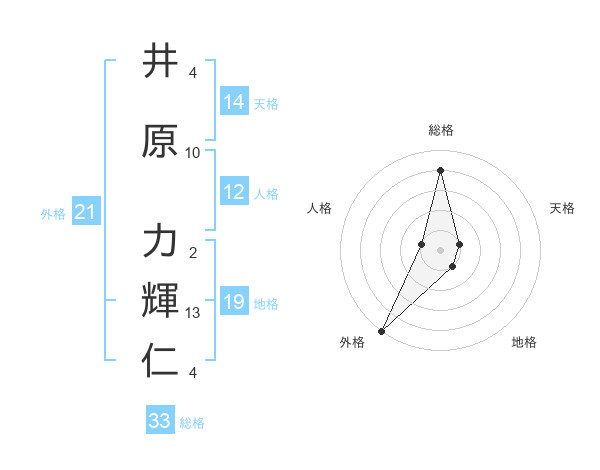 井原 力輝仁さんを姓名の画数から五運を鑑定