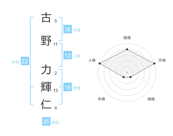 古野 力輝仁さんを姓名の画数から五運を鑑定