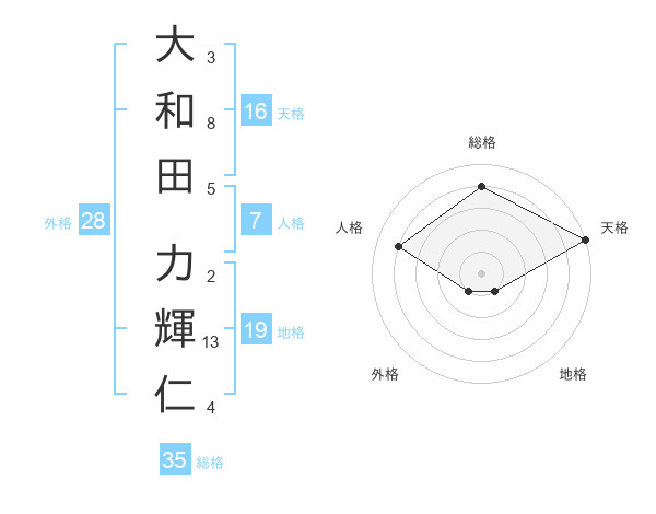 大和田 力輝仁さんの総格は35画の4点