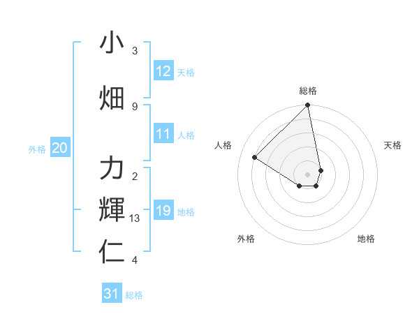 小畑 力輝仁さんを姓名の画数から五運を鑑定