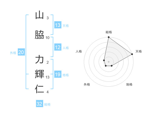 山脇 力輝仁さんの総格は32画の5点!