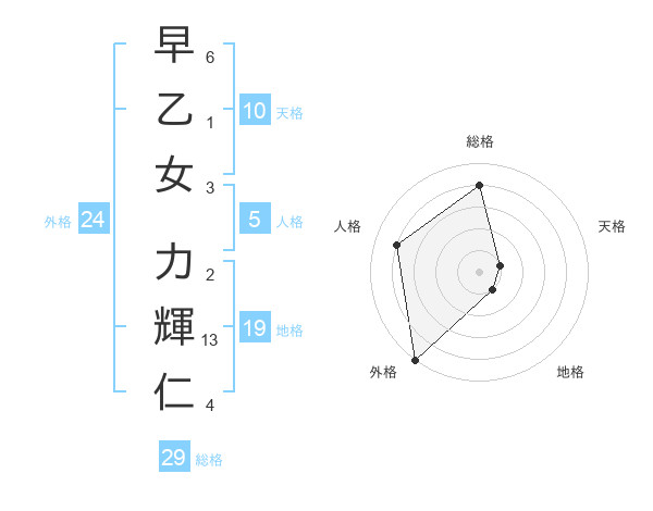 早乙女 力輝仁さんを姓名の画数から五運を鑑定