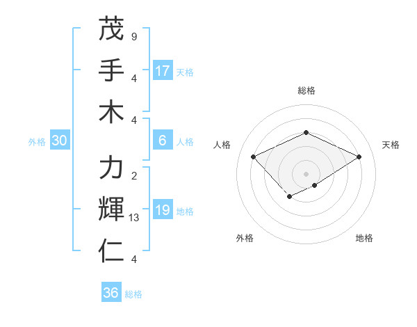茂手木 力輝仁さんの総格は36画の3点!