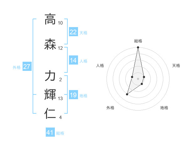 高森 力輝仁さんの総格は41画の5点!