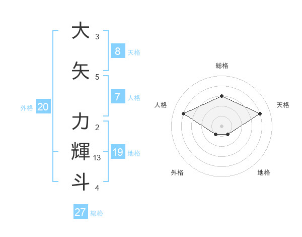 大矢 力輝斗さんを姓名の画数から五運を鑑定