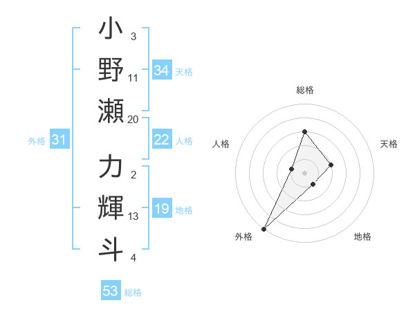 小野瀬 力輝斗さんを姓名の画数から五運を鑑定