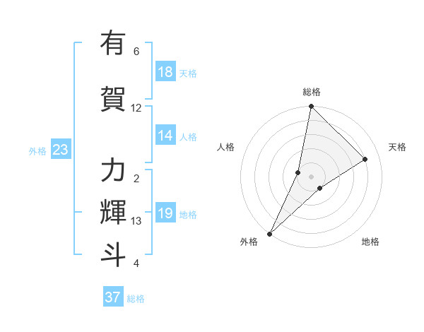 有賀 力輝斗さんの総格は37画の5点!