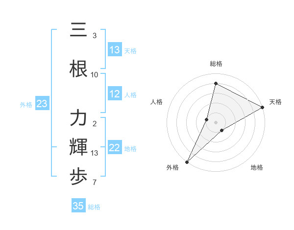 三根 力輝歩さんの総格は35画の4点!