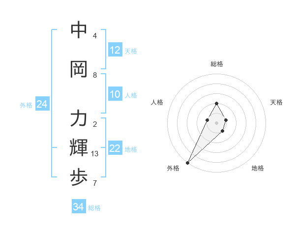 中岡 力輝歩さんの総格は34画の2点!