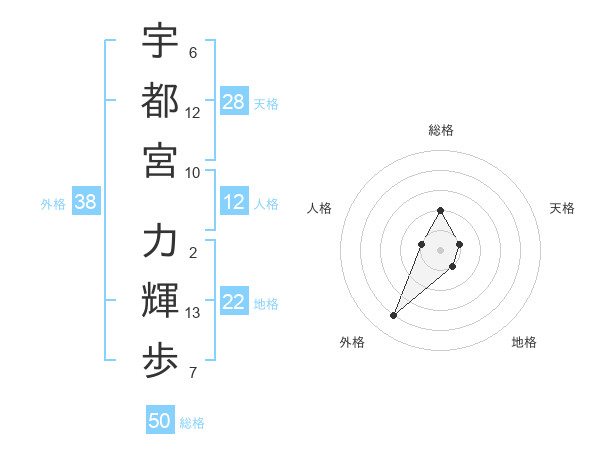 宇都宮 力輝歩さんを姓名の画数から五運を鑑定