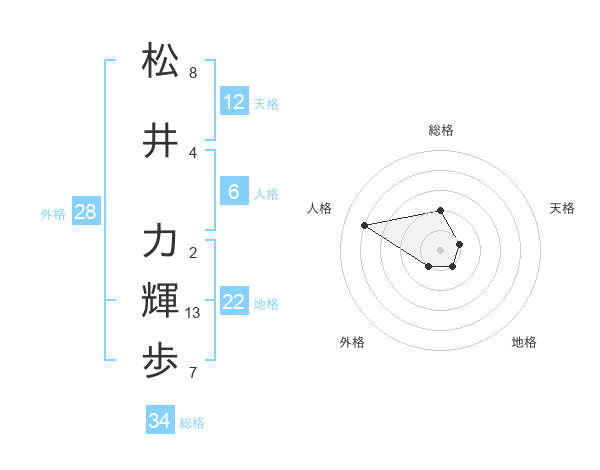 松井 力輝歩さんの総格は34画の2点