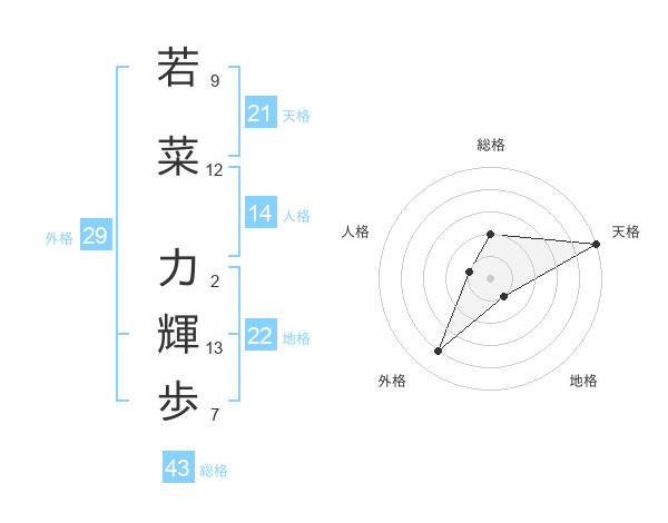 若菜 力輝歩さんの天格は21画の5点!