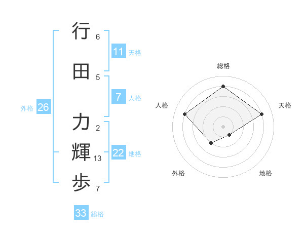 行田 力輝歩さんを姓名の画数から五運を鑑定