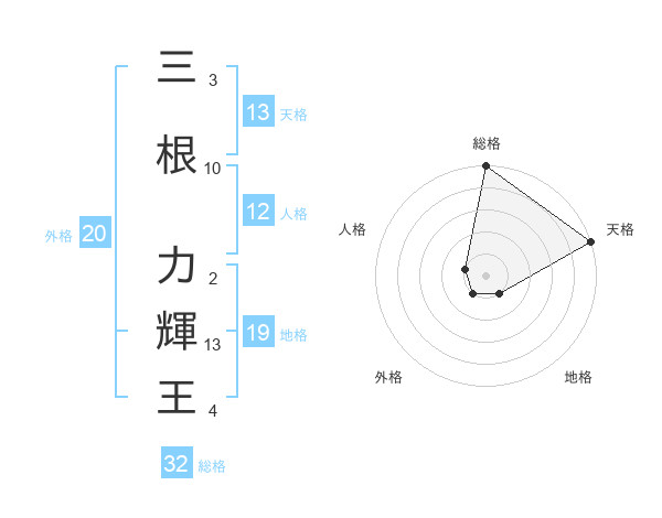 三根 力輝王さんの天格は13画の5点!
