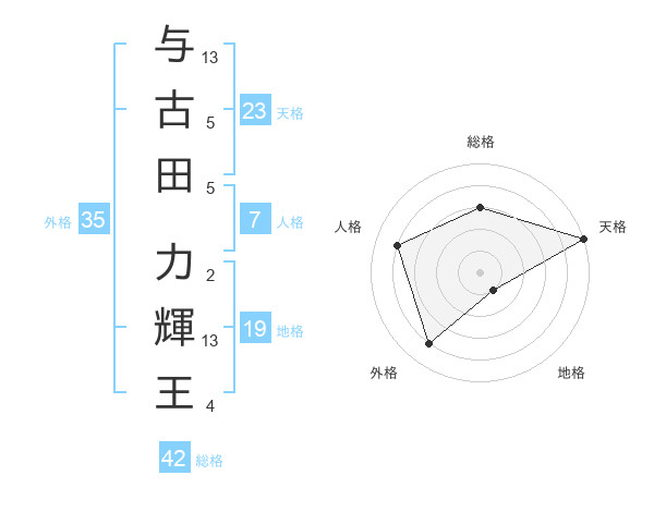 与古田 力輝王さんを姓名の画数から五運を鑑定